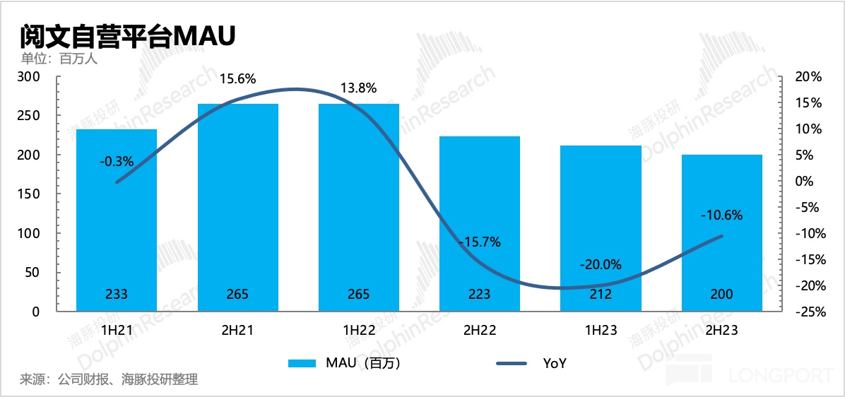 (1)整体月活继续下滑至 2 亿,主要是因为公司主动减少免费,进而收缩了网文内容在腾讯产品自营渠道上的分销,不过下滑幅度环比上半年有所放缓。