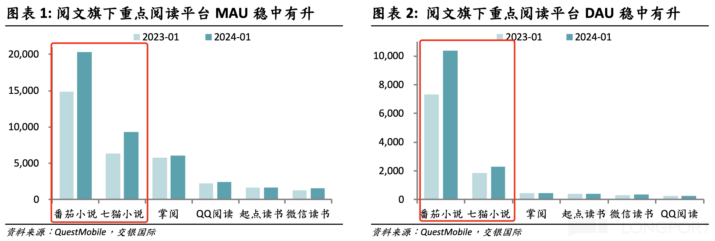 从第三方数据 Questmobile 来看,阅文用户流失的同时,番茄、七猫两个免费阅读的头部平台,仍然具备高增长的活力。虽然阅文旗下平台流水保持稳定,但免费阅读吃掉的是潜在的增量用户,影响的是存量盘子下,阅文在线阅读业务目前的市场份额。