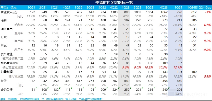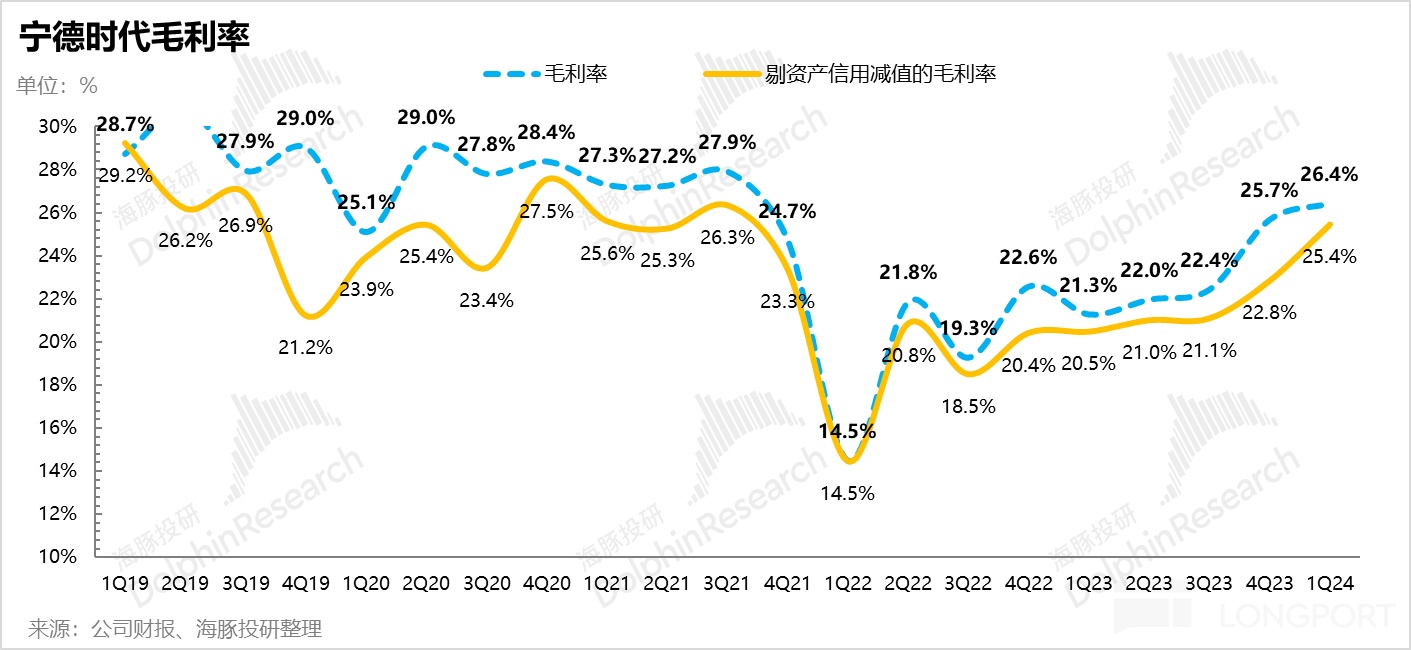 从一季度业绩来看,宁王仍然交出了一个不错的答卷,虽然收入端仍低于市场预期,但毛利率端在一季度的出货量低谷下仍有所回升,继续环比提高至 26.4%。