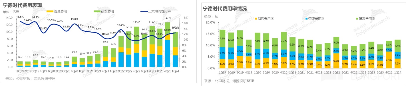 本季度在销售淡季出货量低谷的情况下,毛利率继续环比提升至 26.4%,超市场预期 25.4%,在本季度出货量减少导致的规模效应减弱之下,海豚君认为主要和单 wh 价格基本维稳以及原材料碳酸锂价格继续下行有关,背后仍然是宁王产业链强议价权的体现。