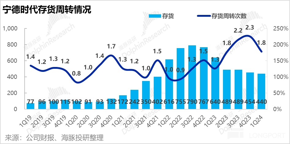 - 主动去库存告一段落:本季度存货 440 亿人民币,相比去年年底 454 亿环比下滑 3%,宁王主动去库存基本告一段落。