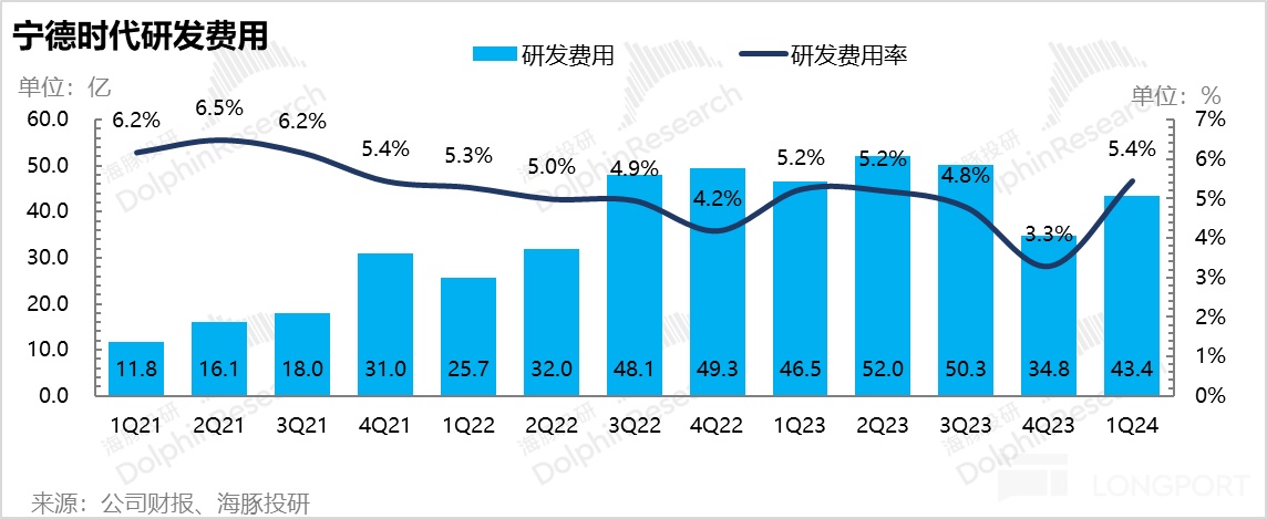 研发投入上,宁王一直以来都是通过高强度的研发打造产品差异化从而实现产品溢价,凭借领先的电池技术构造自身的竞争壁垒。