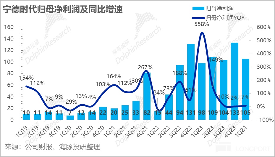 2024 年 4 月 15 日晚,宁德时代公布 2024 年第一季度业绩。来看重点: