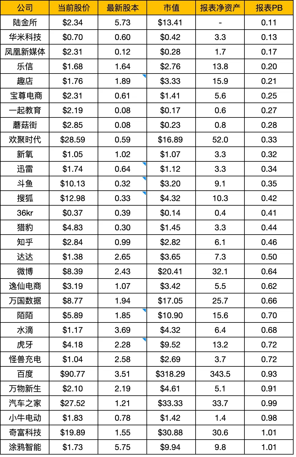 以上是我跟踪和统计的 31 家 PB 低于 1 的中概股。