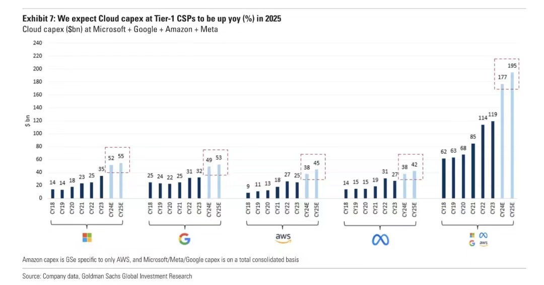 这个图 5 月时发过,2025 年在 2024 年基础上增长缓慢很多(2024 年是巨额增长的)。所以我预计英伟达 2025 年收入增长是 30%-40% 左右,一些研报也是差不多的数据(最新的研报可能有上调)。