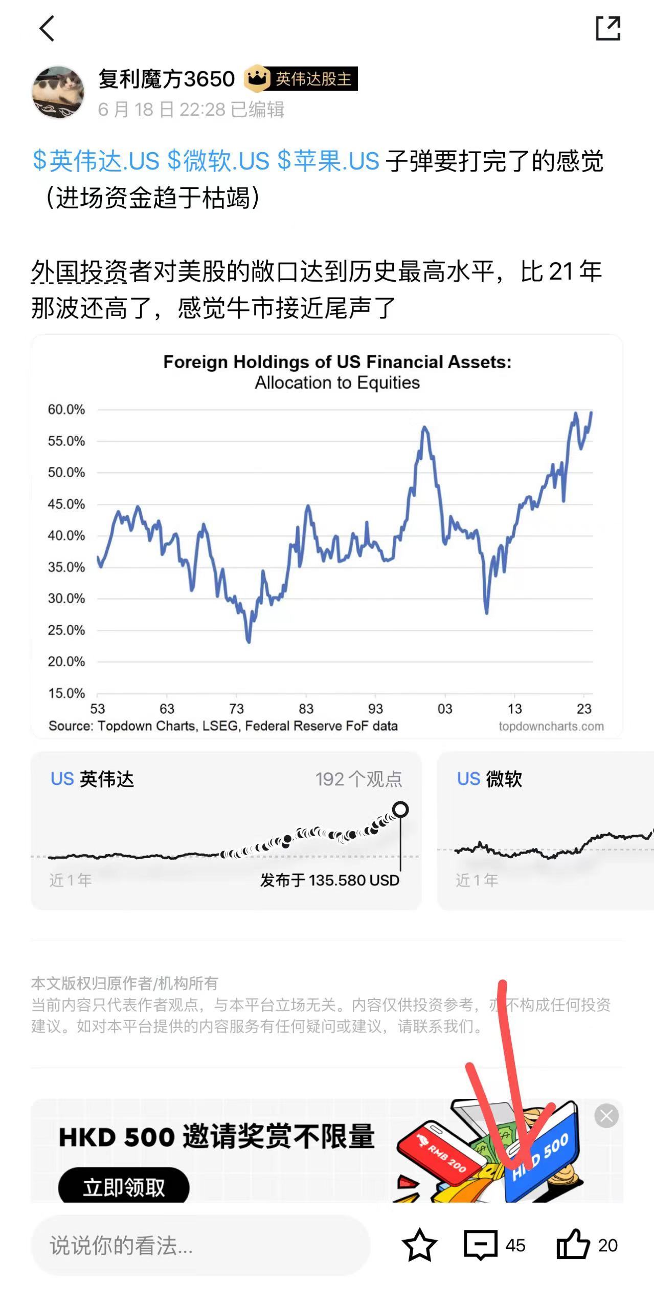 我看大家回复帖子的很多,说明大家也在担心见顶的问题: