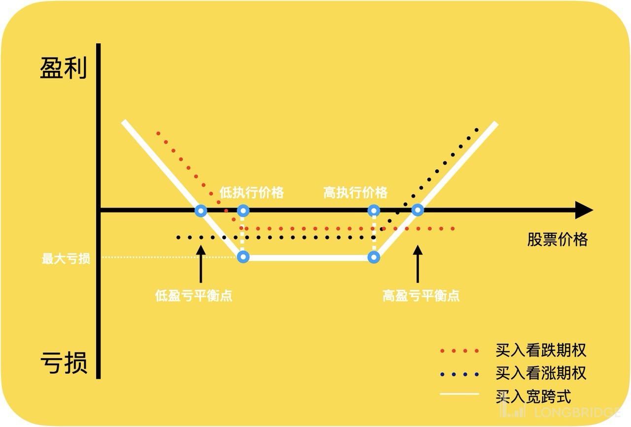注意如果股价平稳过渡,那么宽跨式要损失两份期权金。(也就是说如果你觉得英伟达后面波动不大,可以选择卖出宽跨式,赚两份权利金)具体可以看看:第二节:买入宽跨式(预期股票宽幅波动)