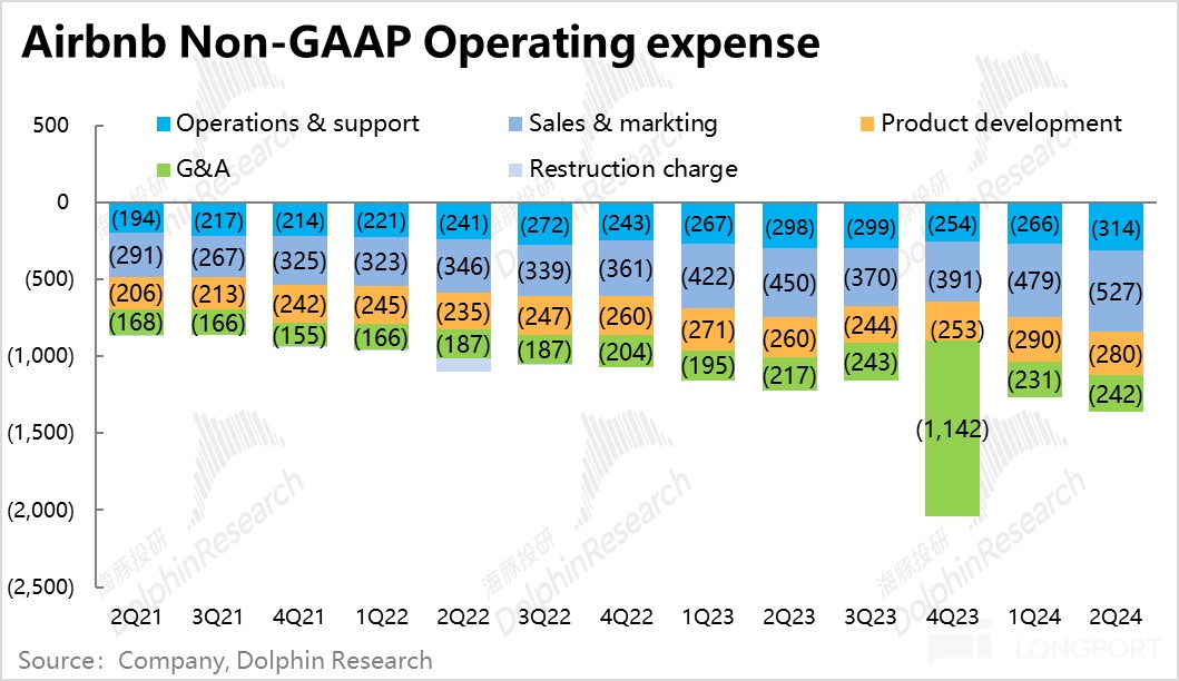 3、费用层面,按剔除股权激励的口径,除了研发费用支出环比略降外,其他费用支出环比 1Q 都有所增长。其中营销支出由$4.8 亿环比大增约 19% 到约$5.3 亿,增长最为明显。这和管理层上季业绩时表示要加大投入的指引一致,也反映出公司面对增长持续放缓,加大营销投入属于主动和被迫皆有的抉择。