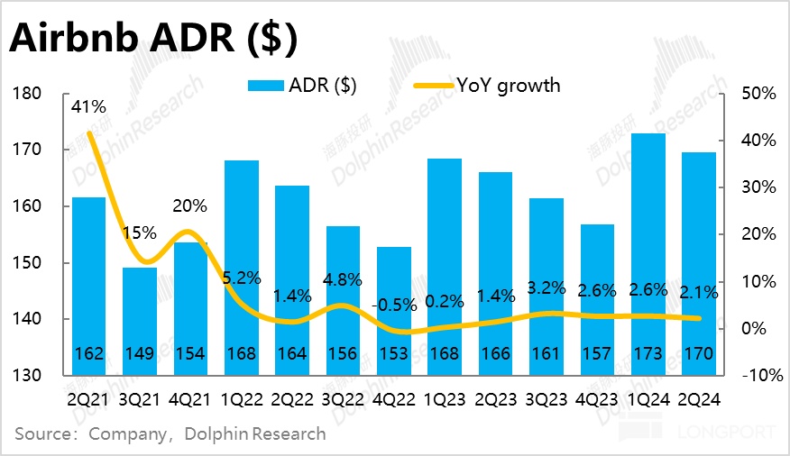 价量驱动因素上,本季总预定间夜量约 1.25 亿次,环比继续小幅降速 0.8pct,相比市场预期的是间夜量增速环比持平,实际间夜量比预期低 0.7%。价的层面,本季平均客单价达$170 每晚,比预期的要高 0.6%。客单价走高一定程度弥补了走弱的间夜量,是本季预定金额比预期略好的主要原因。