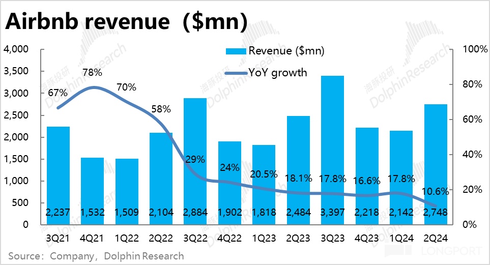 更大的问题是,原本受益于四年一度的巴黎奥运会,市场是预期下半年爱彼迎的增长能有明显的提速。如果事实果然如此,那么今年一二季度(暂时)稍弱的业绩,并非不可原谅。但大失所望,根据指引三季度不仅没有提速,反而进一步放缓,打破了市场对放缓只是暂时的预期,而更可能是持续性的。这在一定程度上已属于 “杀叙事逻辑” 的严重问题。