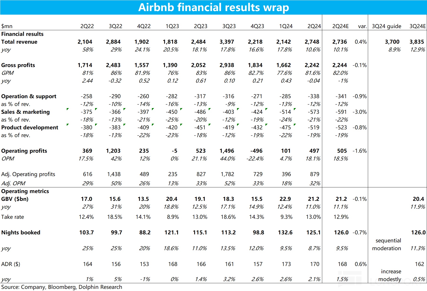 北京时间 8 月 7 日美股盘后,$爱彼迎(ABNB.US) 公布了 2024 财年二季度财报,当季业绩虽有走弱但尚在预期之内,但继续走弱的下季度指引则明显不及预期,打破了市场对下半年业务增长能复苏、提速的 “美好愿望”,详细要点如下: