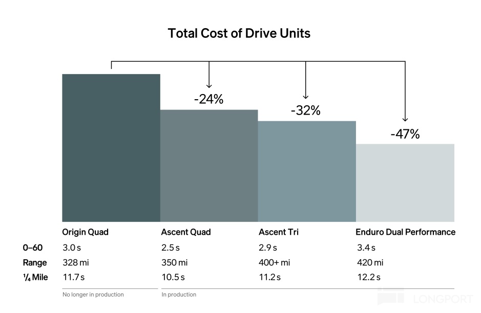 1)先从单车可变成本端来看:Rivian 之前将最主要的毛利率转正因素归为可变成本的提升