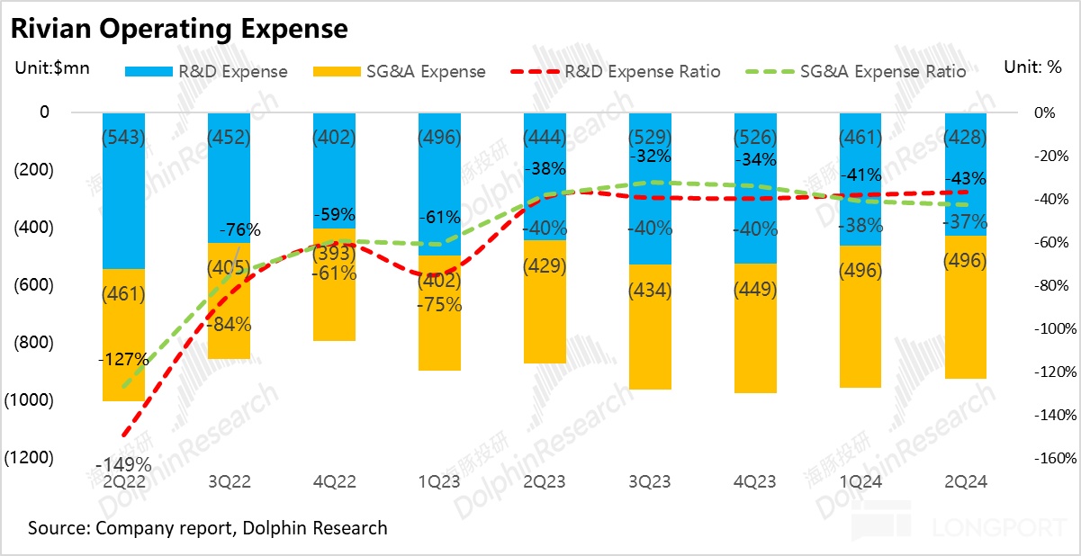 Rivian 预计下半年整体经营费用会比上半年有所减少,也体现了 Rivian 正在通过管控经营支出,以及库存管理来保护现金流的策略。