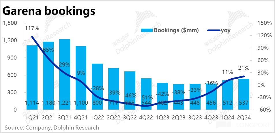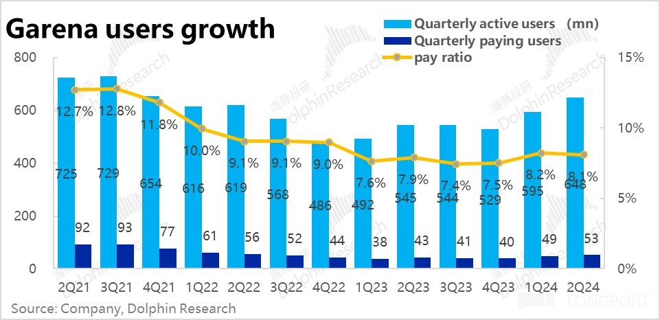 而在强劲的用户增长驱动下,关键的游戏流水本季继续环比增长 5% 到 5.4 亿, 因此本季 Garena 游戏业务的表现并不差,是继续呈现慢慢回暖的趋势。