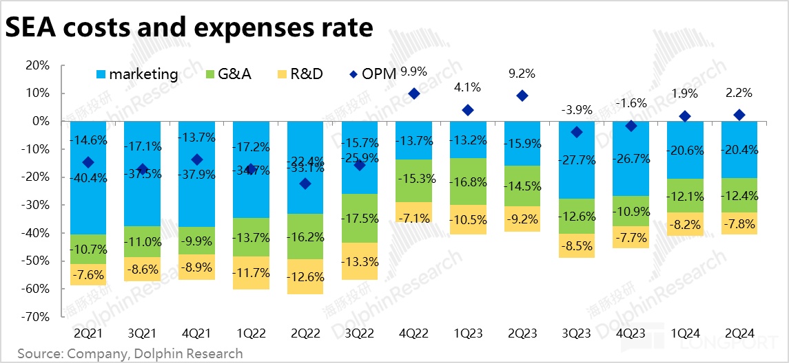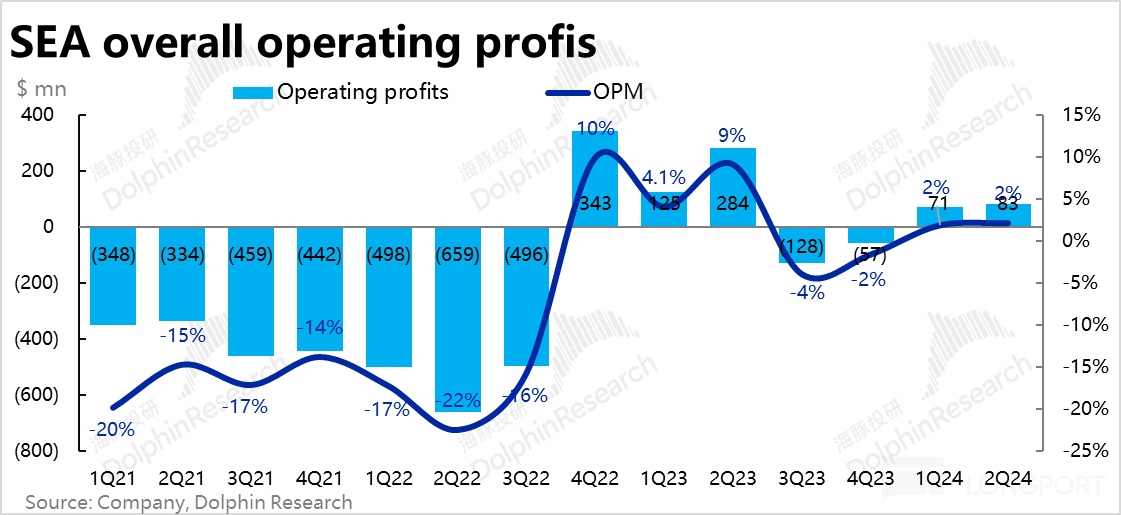小结上文,增长层面,电商板块虽然环比增长停顿,但相比预期更强。Garena 游戏板块虽营收看似较弱,但用户和流水持续回暖,至于 SeaMoney 则维持着高质量增长的态势。总体来看,增长端不求有功,但至少无过。