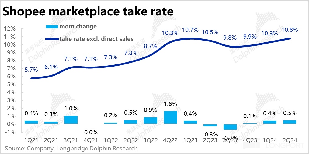 根据我们测算,平台业务的变现率环比继续提升了约 0.5pct 到 10.8%,据我们了解 Tiktok Shop 和 Shopee 等电商平台在东南亚 “携手” 提高变现的情况仍在继续。我们认为变现率的走高显然有利于公司的业绩,但从竞争的角度变现率的提升终究是以商家负担的上升为代价的,无法永续提升下去。