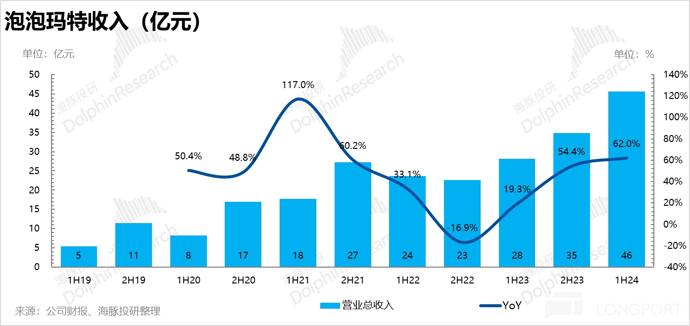 上半年泡泡玛特内地收入 32 亿,同比增长了 31%,看似是比去年下半年的 40%+ 的增速放缓了,但因为整个去年因为是疫情放开后的第一年,单看数水分其实很大。