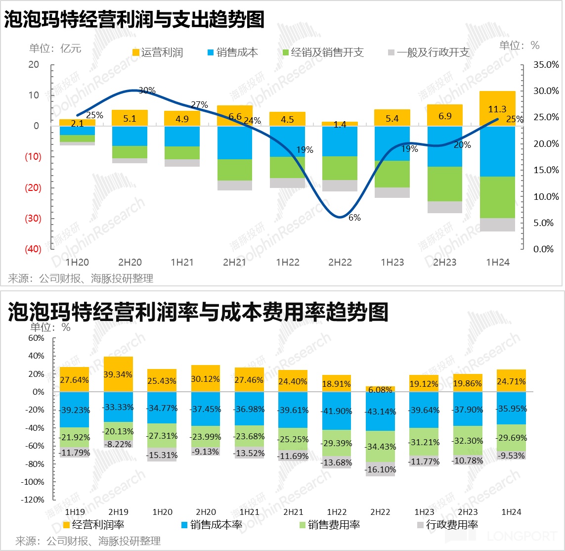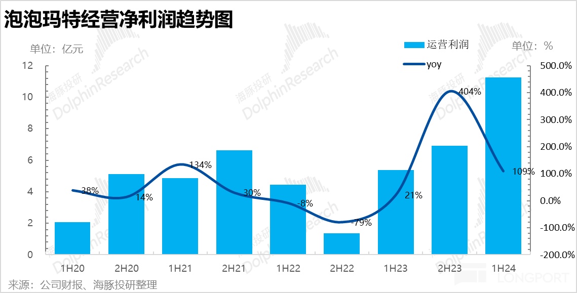 因此这次在正常的同比基数上做到 31% 的增长是实打实的强悍。而从渠道来看,线上是抖音翻倍,泡泡抽盒机和天猫店也都在正增长,其中天猫店同比增长了 28%,但抖音销售额在绝对值上已经超过了原本的公域一哥天猫。