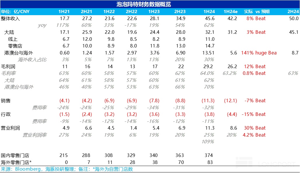 国内收入修复、海外大爆发,泡泡玛特的经营利润上半年实际增长了 110%,比之前预告的 90% 还要更好一些。