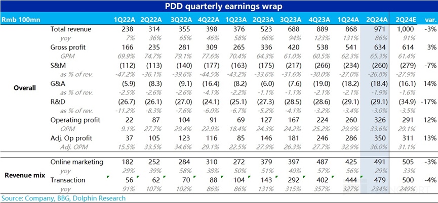 剔除 Temu 和买菜业务的影响后,我们测算的拼多多主站本季的经营利润是达 380~390 亿左右。环比增加 67 亿,和主站收入环增近 80 亿的体量大体接近。