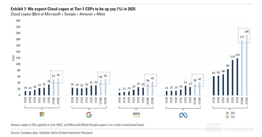 英伟达最大的客户就几家,微软、Meta、谷歌、亚马逊等,这些巨头 2024 年的资本开支可以说是爆发性增长,但 2025 年增长是放缓的。