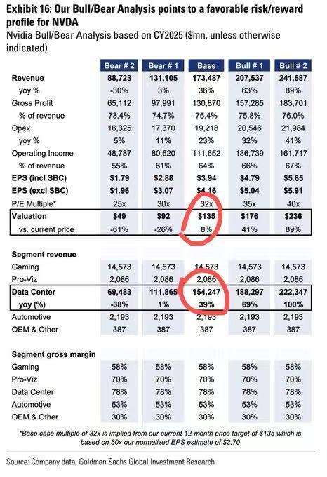 也就是股价 135,数据中心按年增长 39%(至 1542 亿美元):