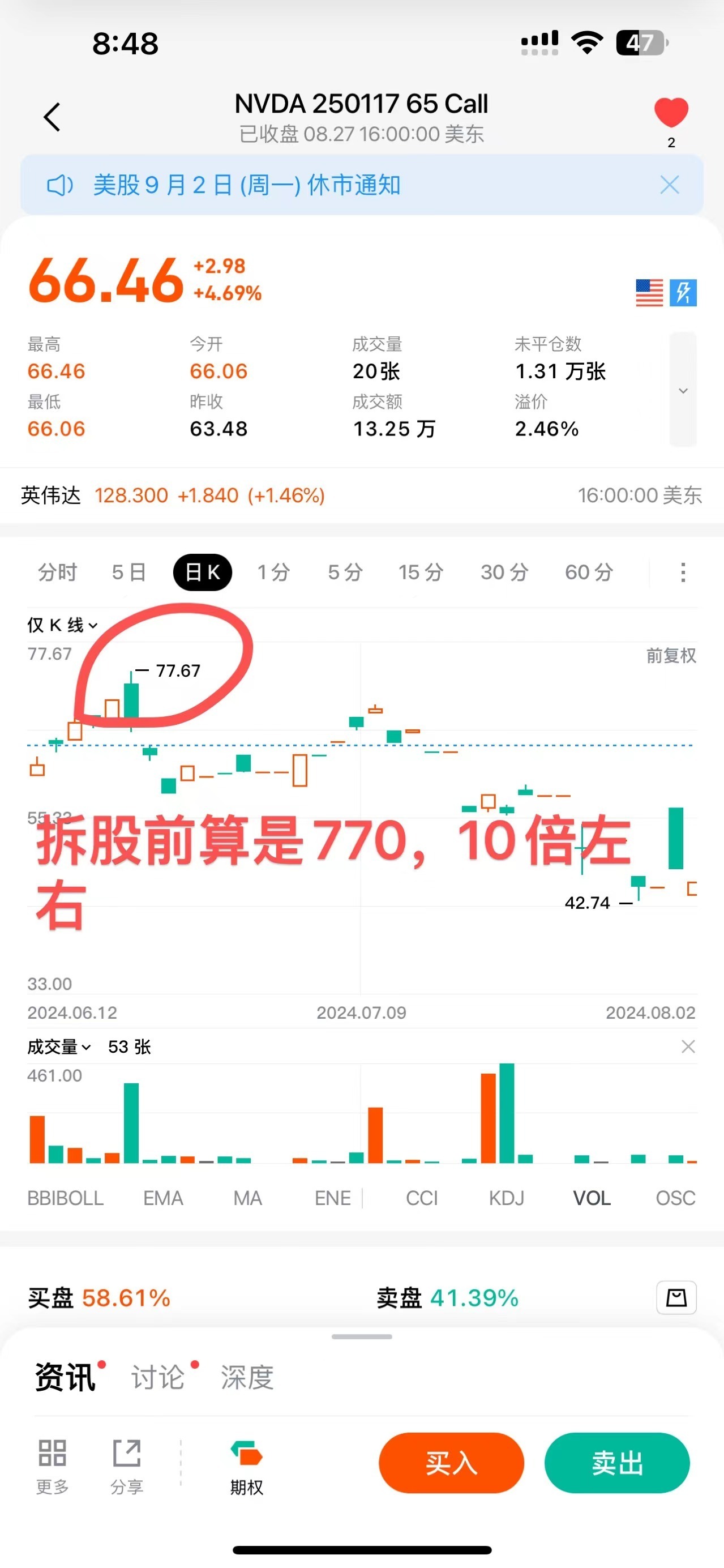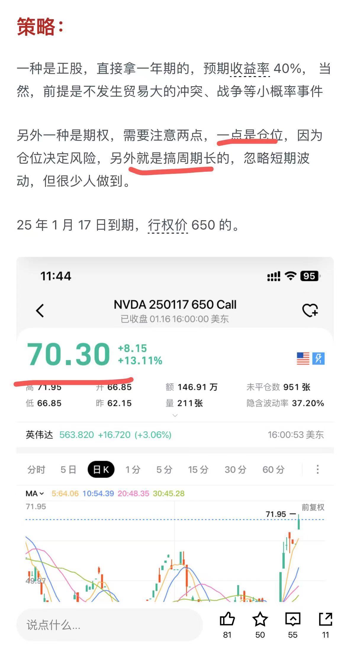 我在 1 月 17 日,推荐了一个期权,英伟达 2025 年 1 月 17 日到期,行权价 650 的期权