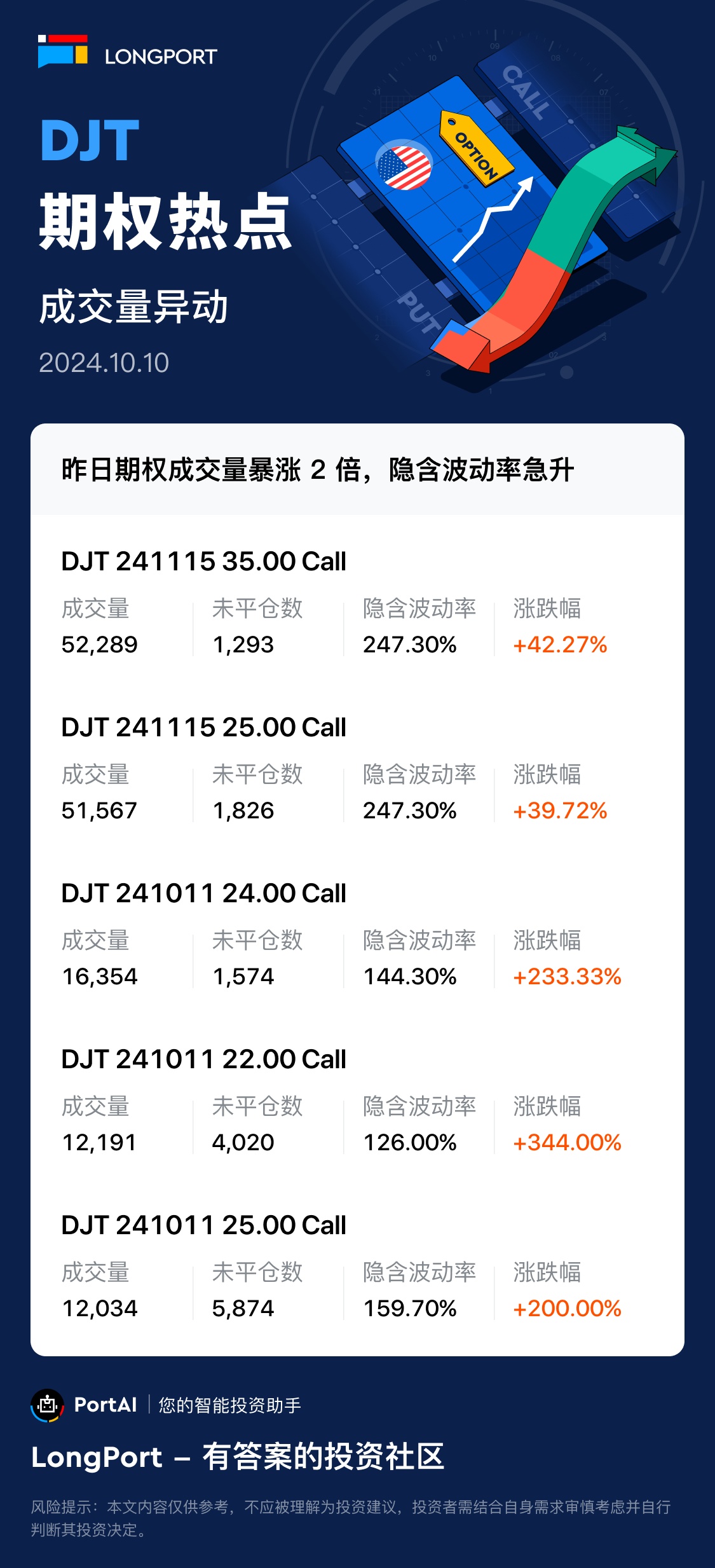 期权成交量昨日大增至超过 40 万张,其中,10 月 11 日到期的多只期权大涨 300% 以上。