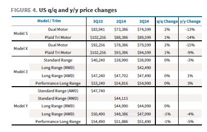 c. 激励措施影响:特斯拉在整个三季度在美国都提供了低息贷款,但对二季度只覆盖了几周;(5 月开始为 Model Y 提供 0.99% 的低息贷款,仅覆盖了 3 周,换算过来对每辆 Model Y 费率补贴高达 6000-8000 美元,三季度虽然为 Model Y 提供 1.99% 的低息贷款,加上降息影响,对每辆 Model Y 补贴费用约 5000 美元左右,但影响覆盖了整个三季度)