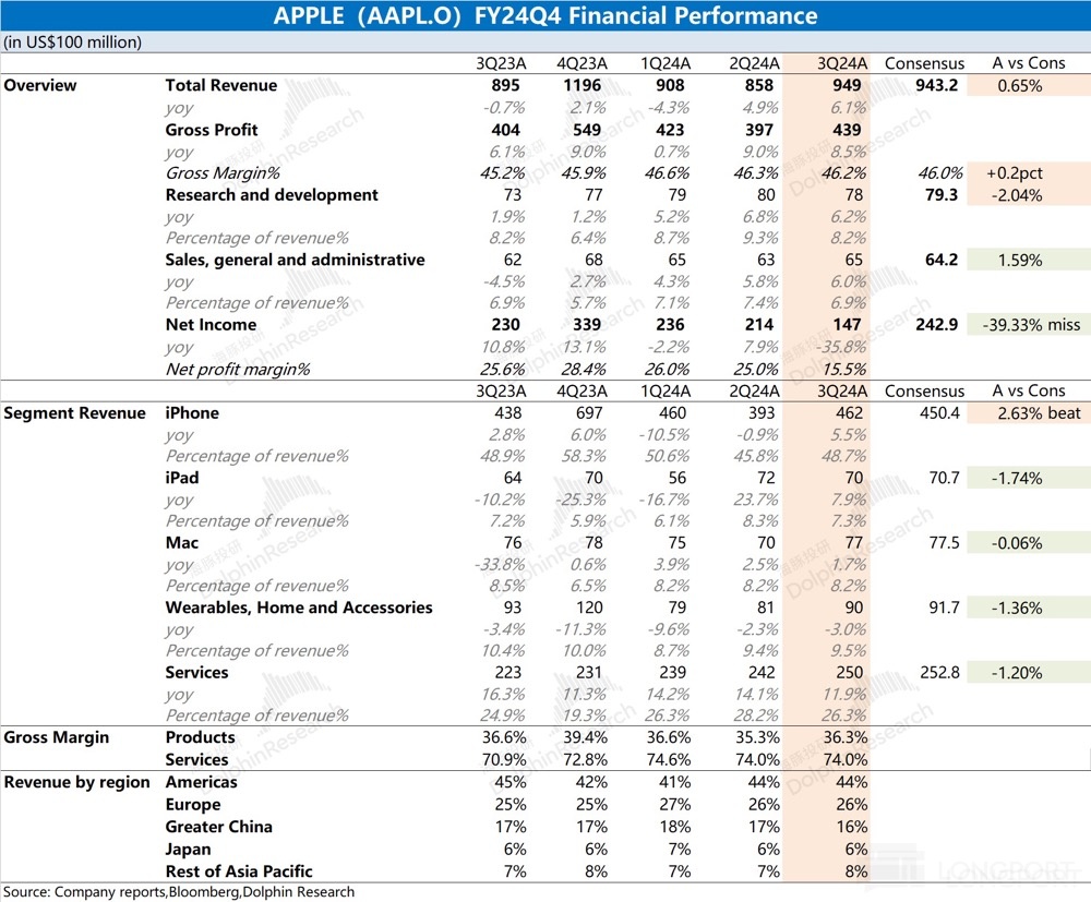以下为苹果 2024 年第 4 季度业绩说明电话会纪要,财报解读请移步《苹果:百亿大出血,还能扛得住?》