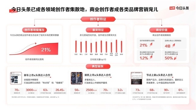 如巨量引擎品牌广告与营销中心负责人洪绯所说:“今天在头条上覆盖有 9.2 万各领域专业性的创作者,这些专业创作者可以用他的专业来提供内容,同时也提高品牌的公信力。”