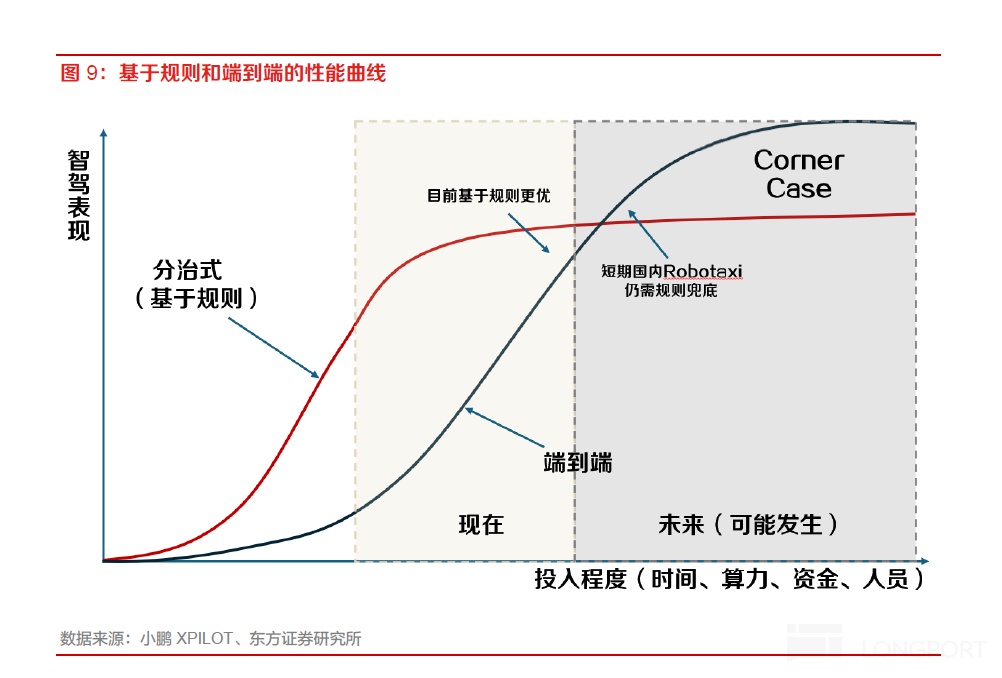 3. 端到端技术进步速度快,而模块式方案仅能线性提升: