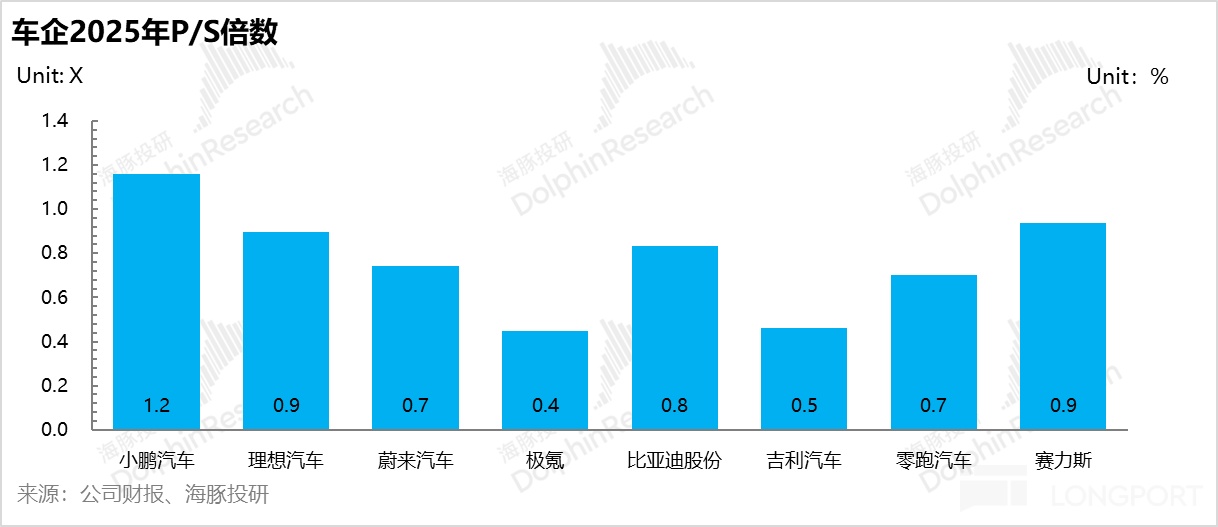 但反观国内车企,目前估值最高的小鹏也仅有1.2倍P/S,而其余新能源车企普遍P/S倍数已经不到1倍,基本上都没有把智驾变现的预期打进估值,仍然还是一个基于卖车硬件端的估值,海豚君认为,在这波智能化演变的趋势下,国内紧跟端到端路线的头部玩家$小鹏汽车(XPEV.US) 和$理想汽车(LI.US) 反而更有机会。