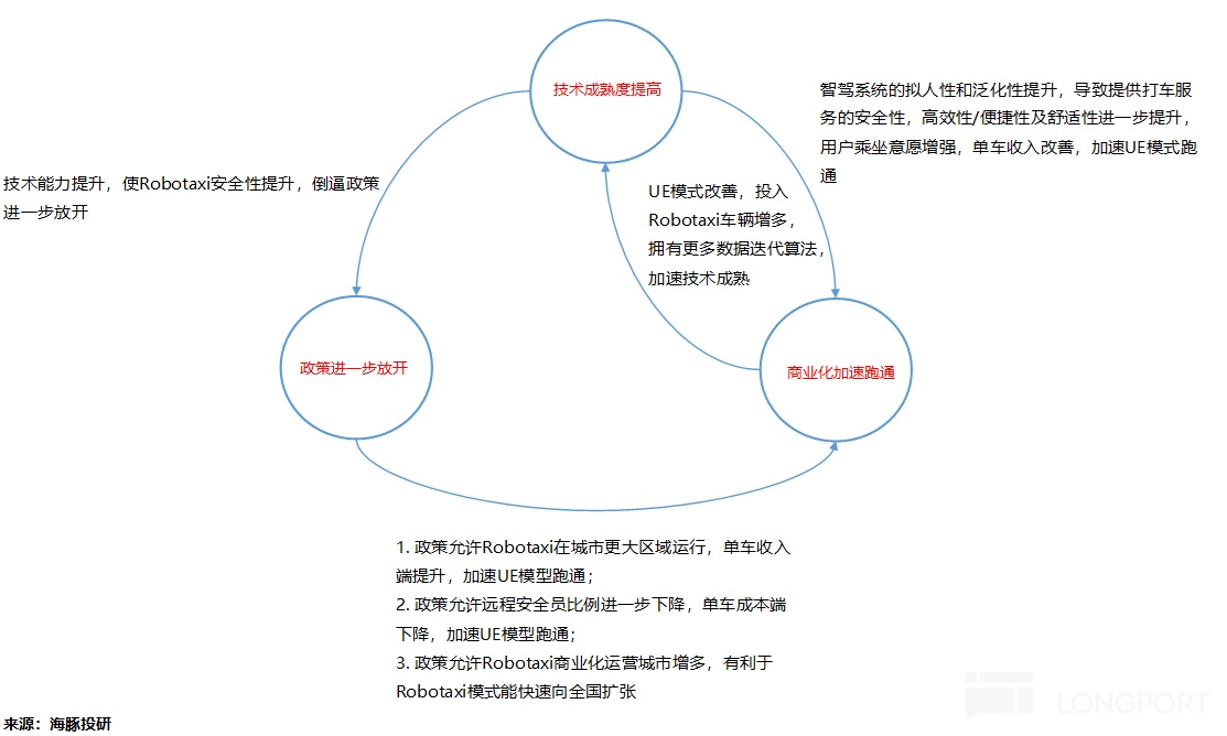Robotaxi真正能跑通的关键,在于泛化性够强,一方面体现在城市的所有区域都可以开展运营(应对复杂场景和corner case的能力强),另一方面体现在该模式可以快速扩展至全国。