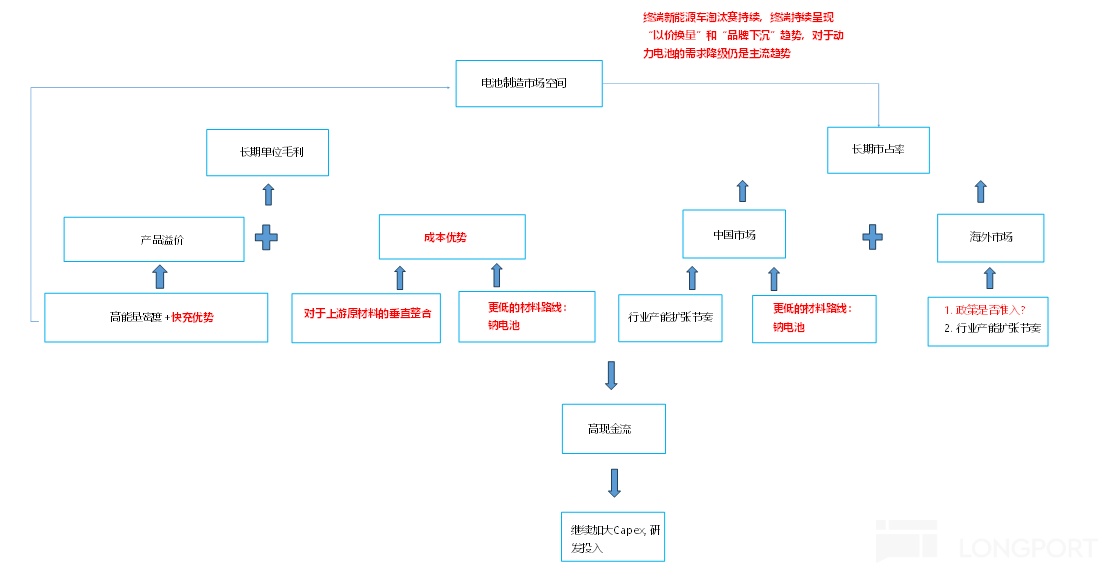 ① 对于上游原材料成本的把控:主要通过对于上游原材料的垂直整合来实现,其次宁王的龙头地位有着对于上游的溢价权,相应获得更低的采购成本;