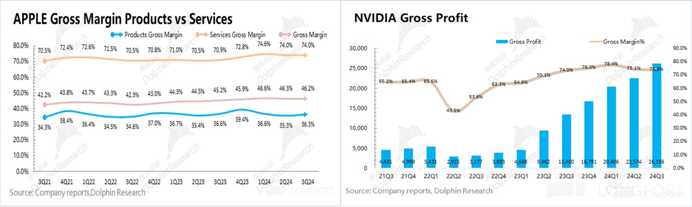 a. 终端应用企业如苹果和英伟达等,本身具备高竞争壁垒(无论是技术/生态壁垒),具备高毛利优势, 本身具备有充足的利润空间回馈给上游产业链的能力;