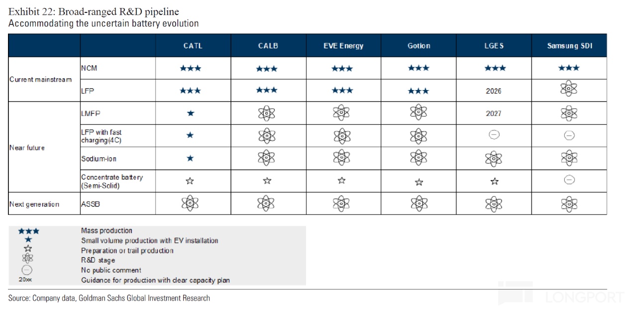 但材料体系的创新仍遵循电化学产业的规律,电化学产业严格意义上属于配方试错中平缓发展的行业,需要底层的长期试错积累,所以会出现同时几种不同技术路线并行研发的情况,且有些技术路线在研发过程中因固有缺陷无法解决还会被淘汰。比如说,从当初已被淘汰的铅蓄电池,镍镉电池,铅酸电池,到如今电池龙头厂商都在同时布局钠离子电池,半固态电池,全固态电池等等。