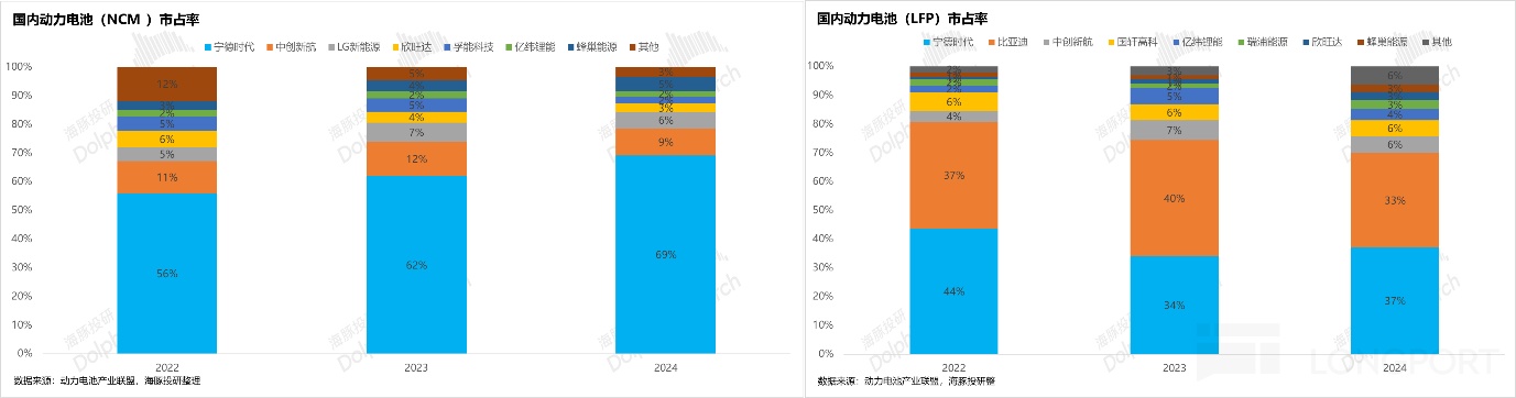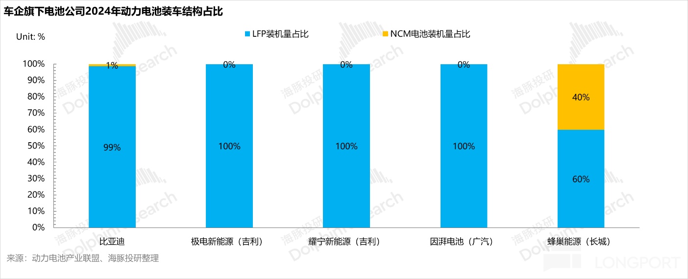 而宁王在LFP动力电池市场丢失的市场份额,一部分被二线电池厂商以低价优势抢占,另一部分被车企自研自产电池抢占。