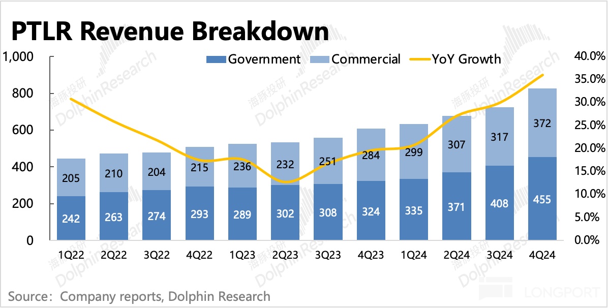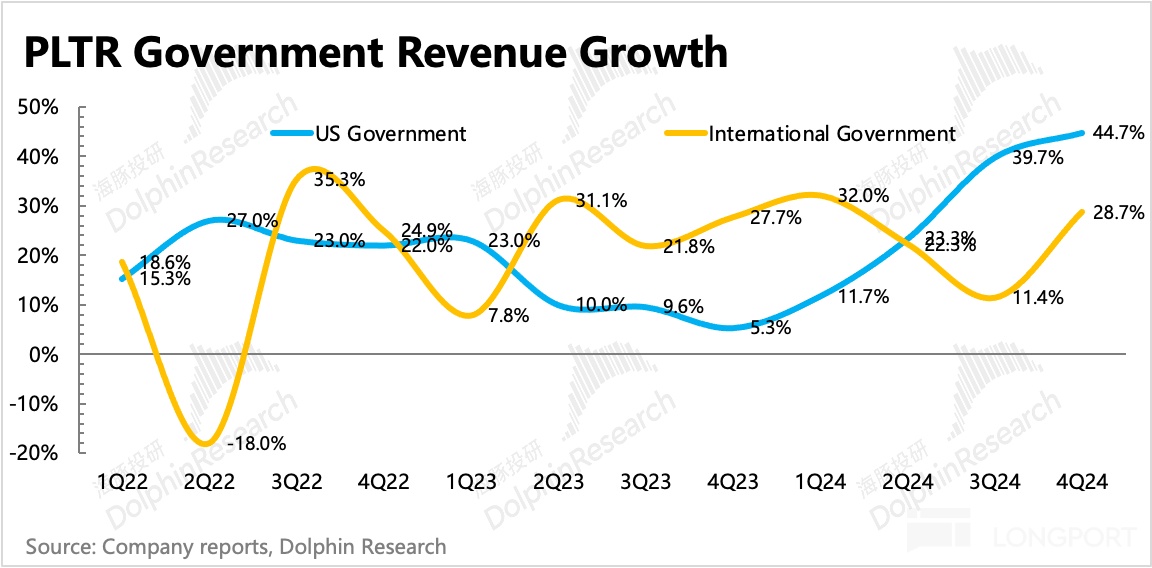 (1)收入贡献高的还是政府收入:Q4 政府收入同比增长 40%,继续加速扩张,主要来源于美国政府需求的驱动。但国际政府收入也有回暖,主要是英澳等地区的国防部订单。