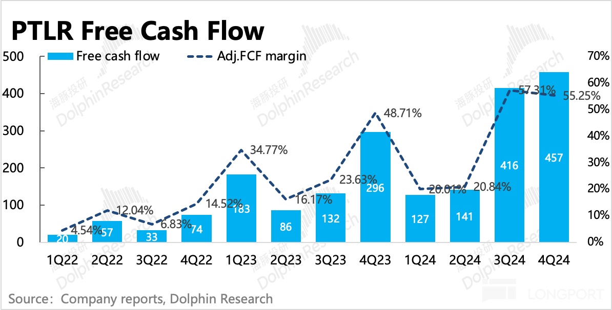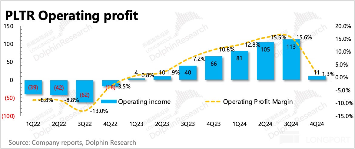 上季度海豚君预判控费周期已过,虽然 Q4 Palantir 确实进一步增加了开支(剔除 SBC),但增速上看,从 Q3 的 7% 增长到 Q4 的 15%,实际上也属于一个适度扩张。因此也没有给利润率带来太大的压力,继续靠着收入高增长提升。