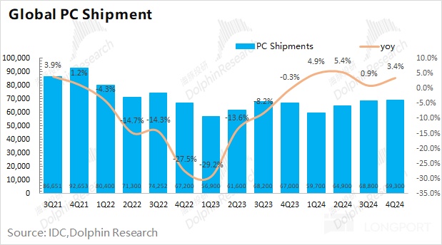 公司预计 2025 年 PC 市场将同比增长 5% 左右,而 AMD 有望凭借产品能力,提升份额的同时,获得超额的增长表现。
