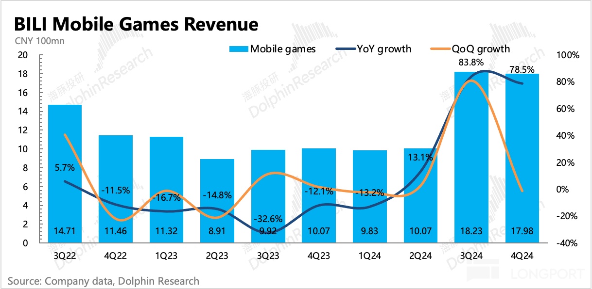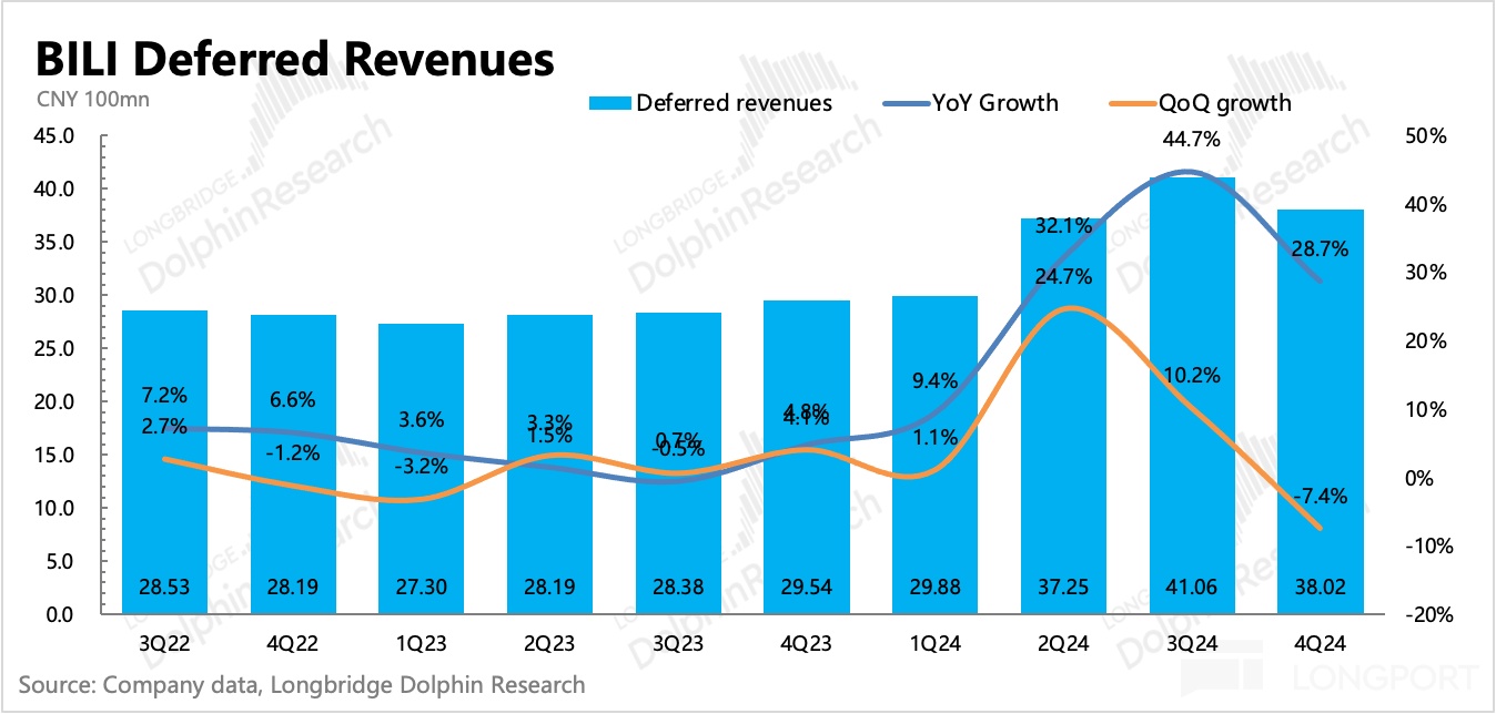 实际上,23 年二季度 B 站开始做直播,并在下半年开始出效果。现在正处于早期红利期后的高基数时期,因此预计下季度还有点基数压力。
