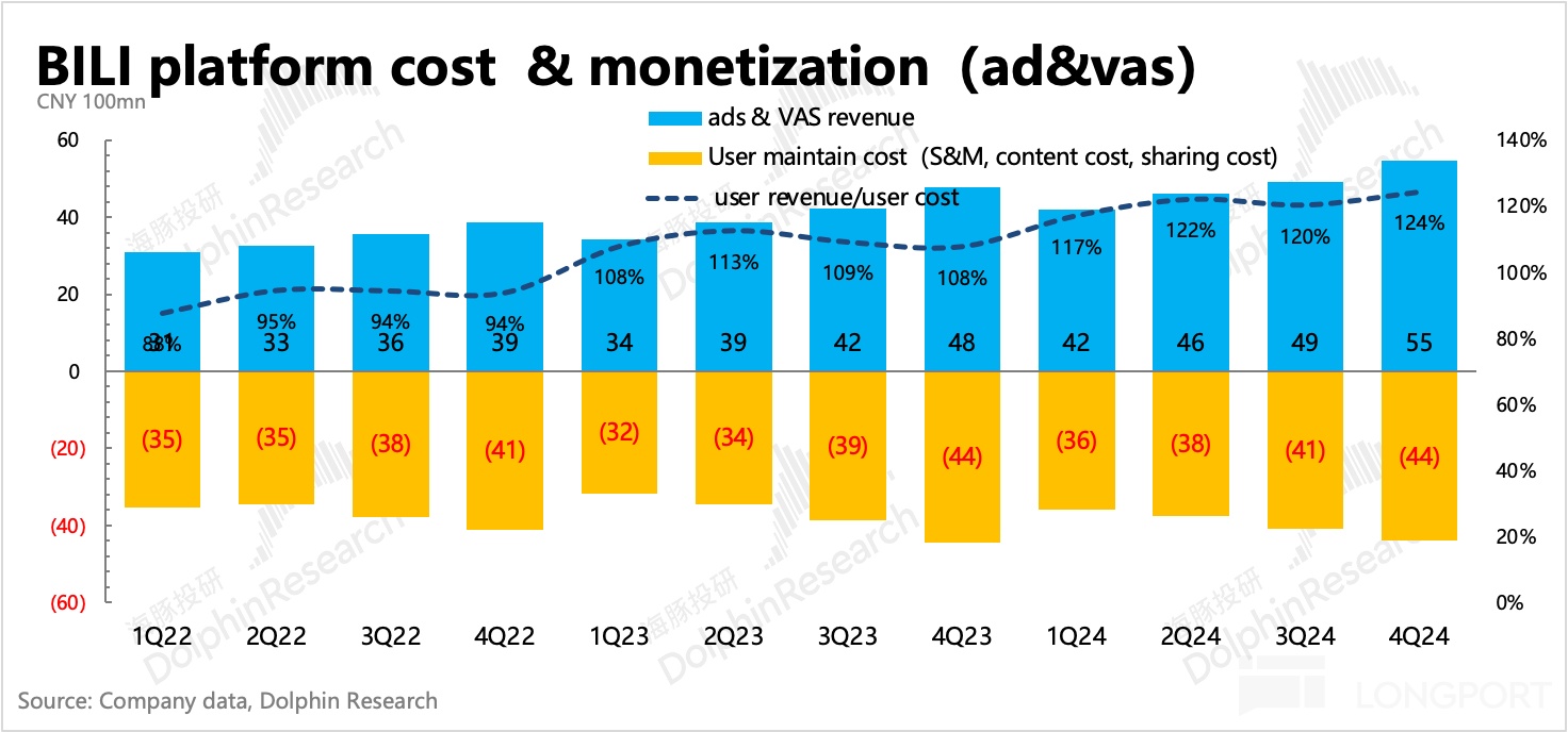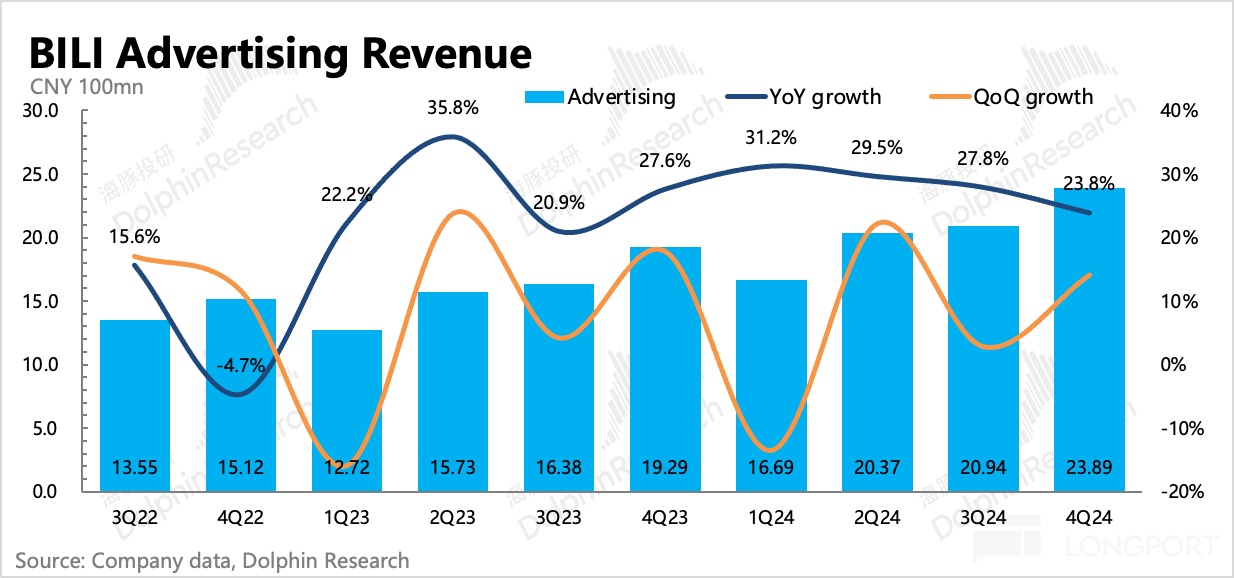 此外,上季度海豚君提及的,广告系统升级带动也不容忽视,尤其是在电商旺季,Up 主带货意愿强烈,有动力向平台采买流量扩大视频曝光。