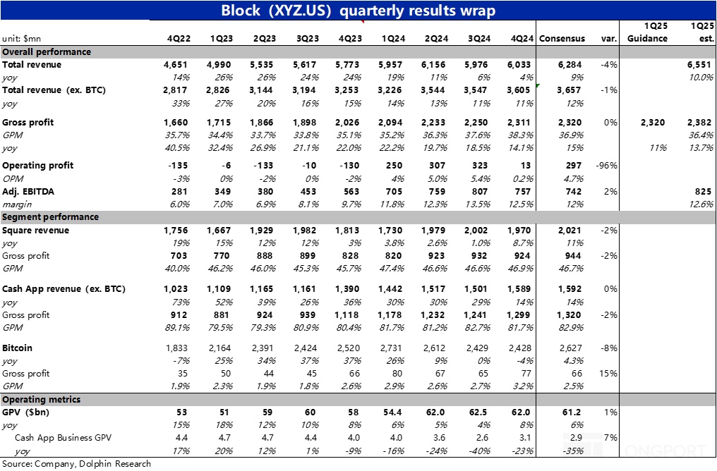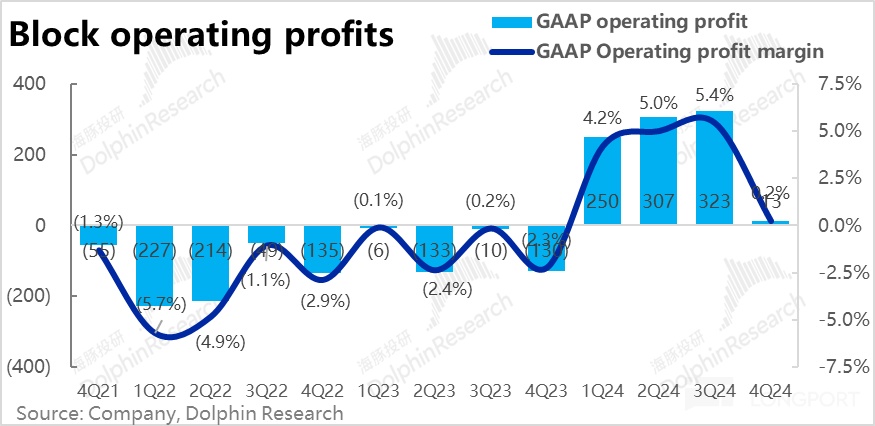 北京时间 2 月 21 日早美股盘后,美国版 “支付宝”$Block(XYZ.US) 公布了 2024 年 4 季度财报,以下为核心要点: