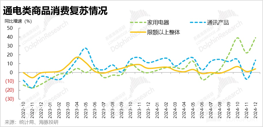 其中,直接受益于国补的通电类产品的收入从上季度的 2.7%,跳跃式拉升到 15.8%,增长最为强劲。而一般商品虽没有国补,但在通电产品外溢的引流效果下,一般商品零售的增长也由上季的 8% 小幅提升到 11%。