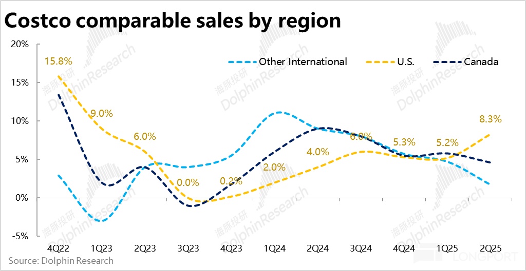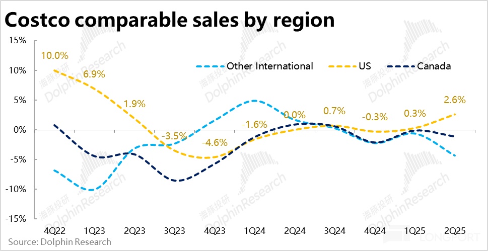 而加拿大和其他国际的同店增长都是环比放缓的,不过着主要是汇率因素的影响。剔除汇兑和油气价格的影响后,加拿大及国际地区的同店增长也有 10%。