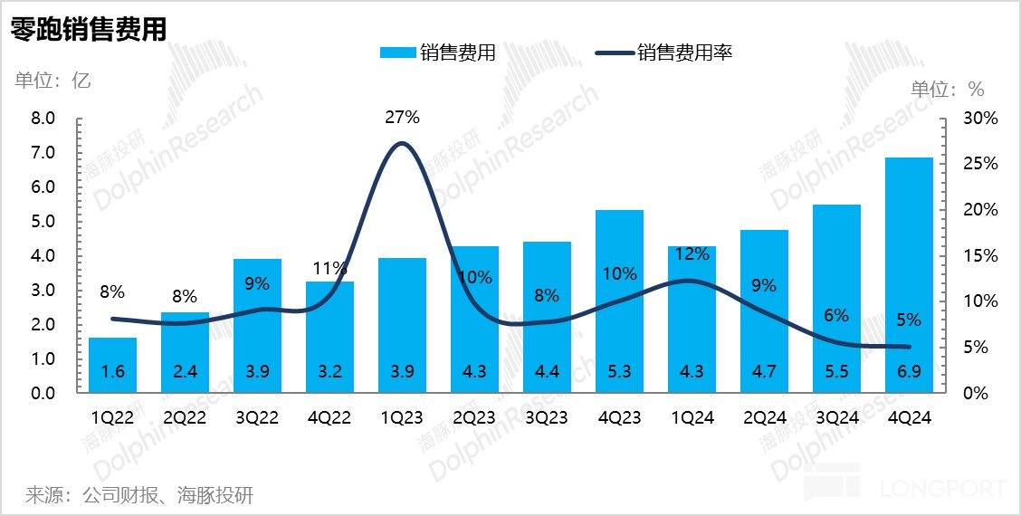 零跑四季度销售费用 6.9 亿, 环比增长 1.4 亿,超出市场预期 4.4 亿,主要因为销售人员增加,及广告宣传投入力度增加。