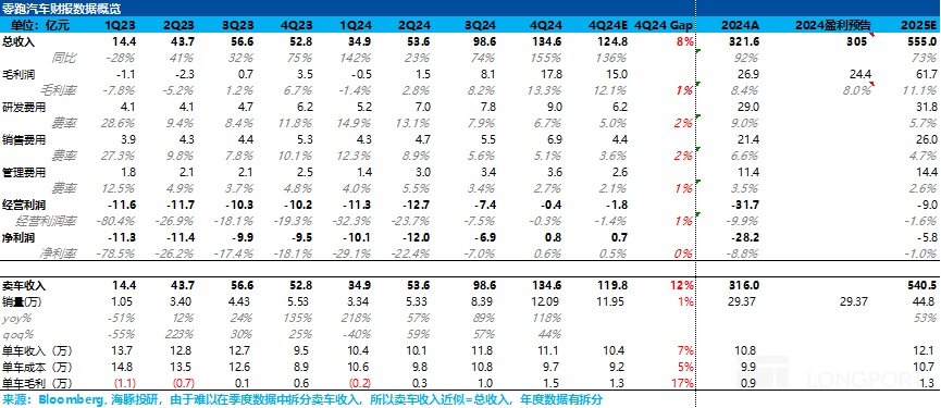 $零跑汽车(09863.HK) 零跑汽车 (9863.HK) 于北京时间 3 月 10 日港股盘后发布了 2024 年第四季度财报。由于零跑已经提前发布了盈利预告,但最后业绩仍然非常不错,超出盈利预告指引和市场预期。具体来看: