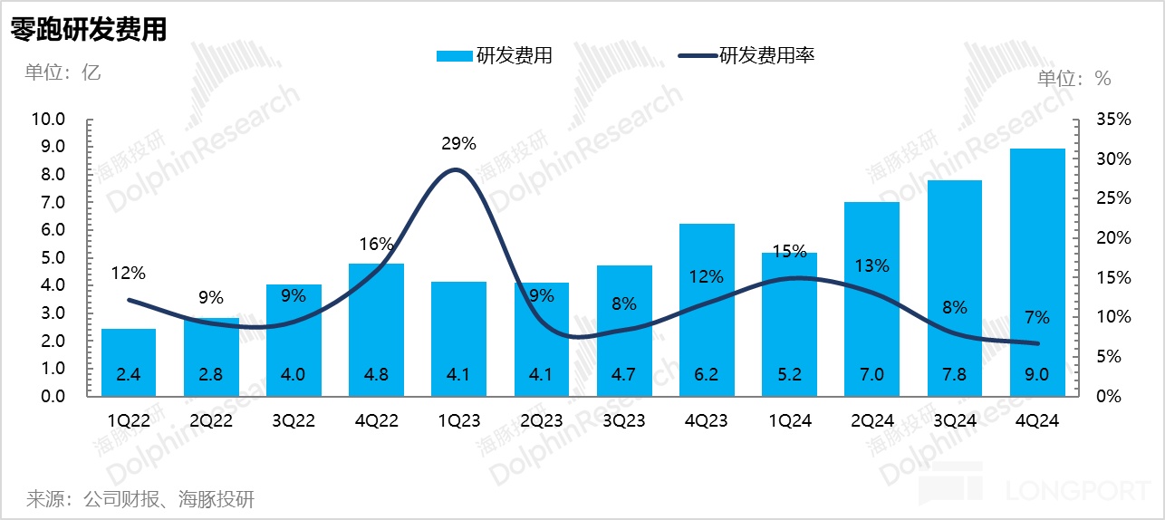 四季度零跑研发费用 9 亿,环比继续增长 1.2 亿,大幅超出市场预期 6.2 亿