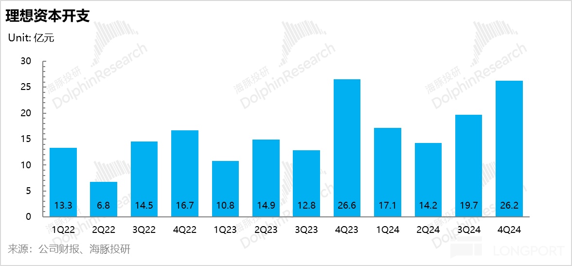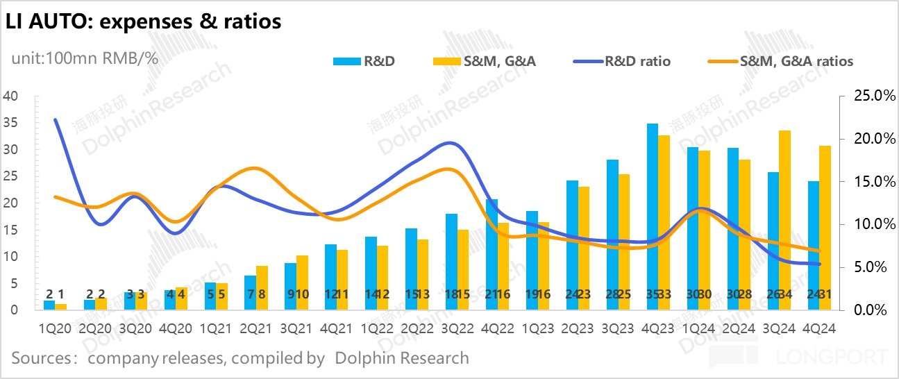 本季度理想研发费用 24.1 亿,环比上季度下滑 1.8 亿,低于市场预期的 28 亿